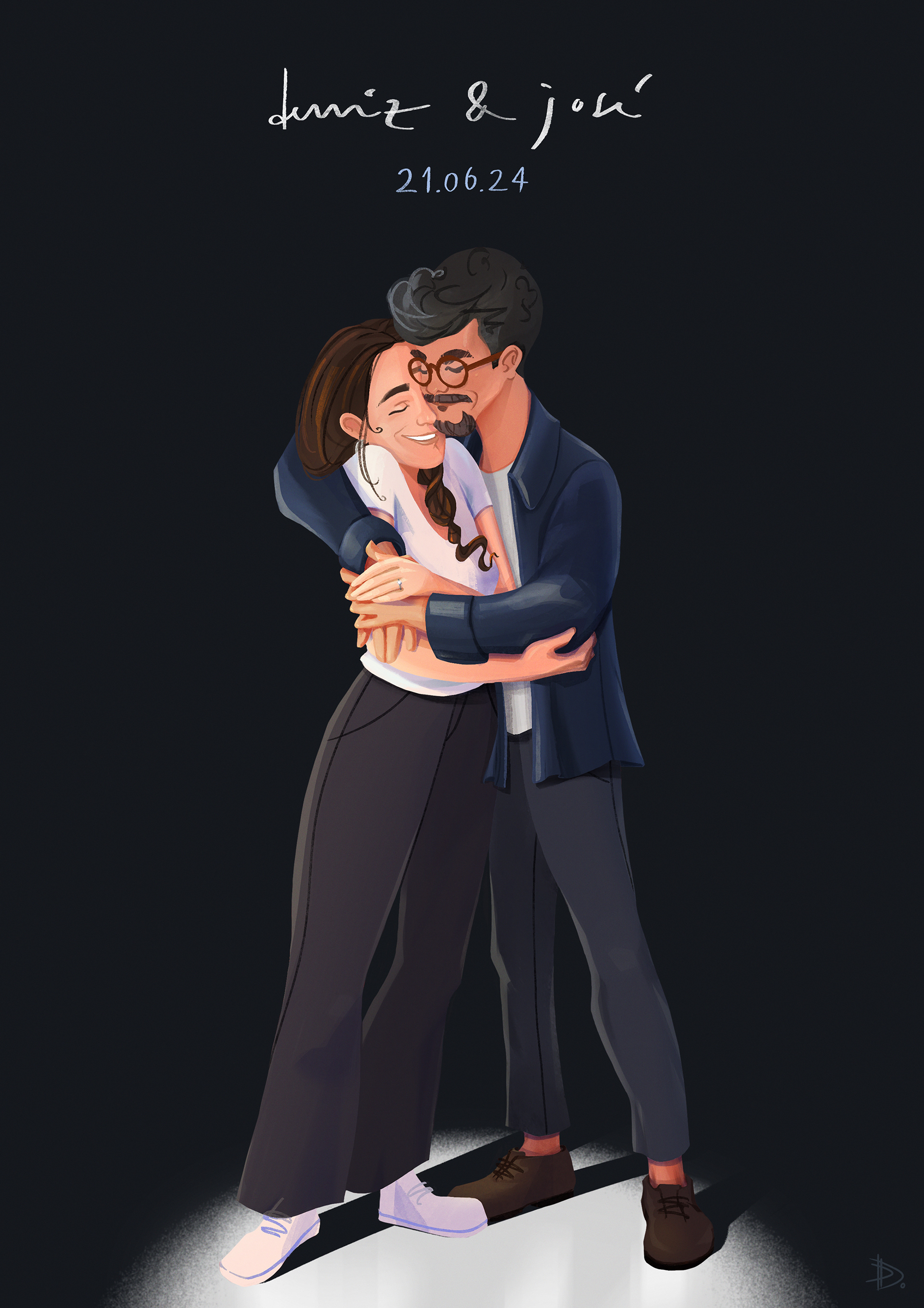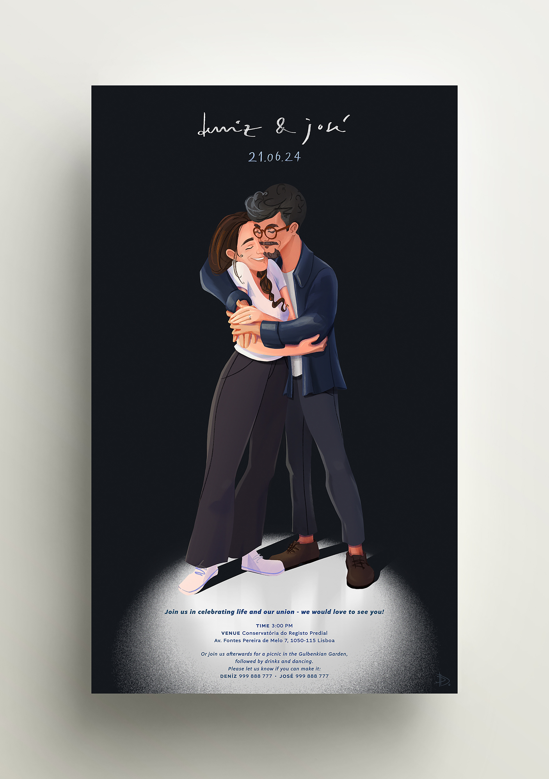 If you're dreaming of a custom invitation for your big (or small!) day or a unique keepsake of your partner, family, friends, or pet... I can design one just for you. Each piece is lovingly hand-drawn. No AI involved! I use your photos as references to create a one-of-a-kind illustration that captures the personality and spirit of you and your loved ones.