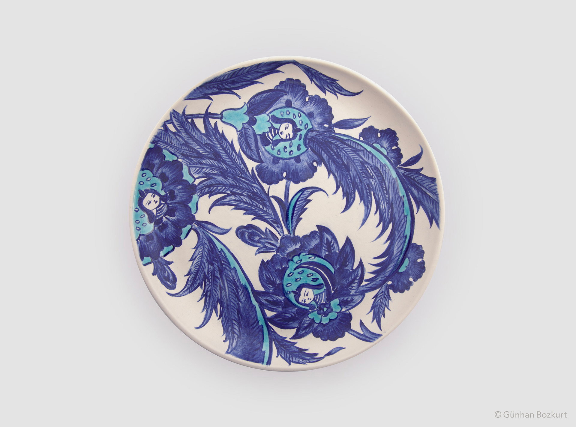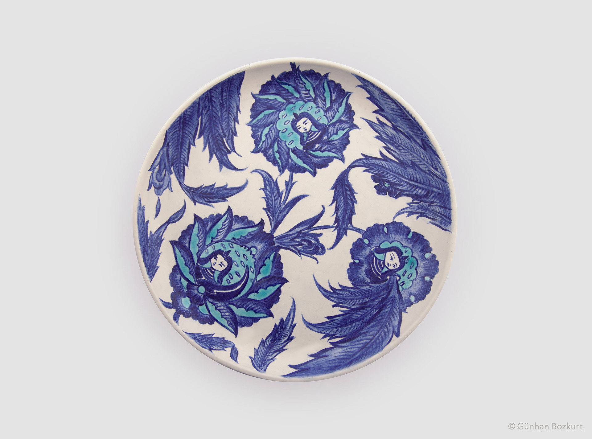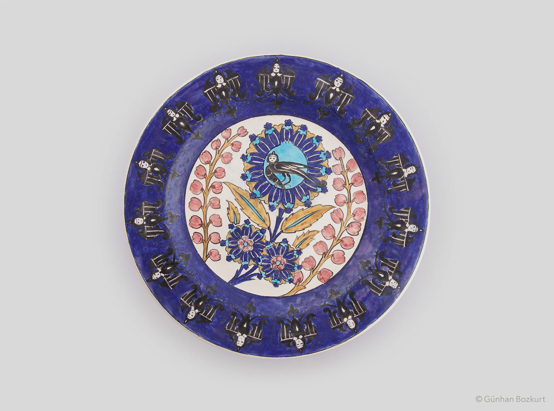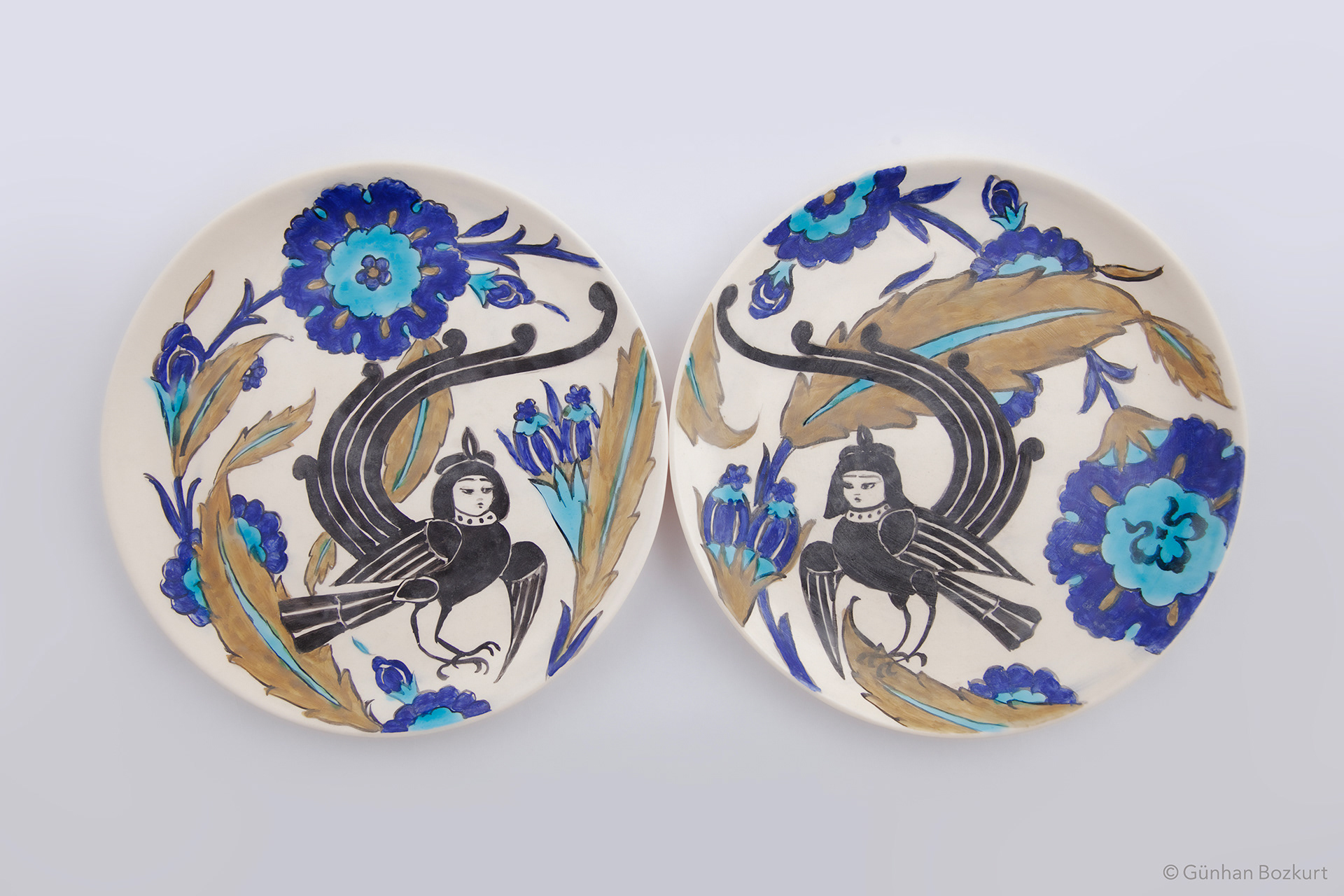 The siren — a mythical creature with the head of a woman and body of a bird — has long hovered between worlds as guardian, protector, and talisman. In Anatolian artisan tradition, sirens often appear in architectural decoration, cherished for the blessing and good fortune they are believed to bring. The Kubadabad Palace tiles are among the finest examples: there, sirens stand alongside griffins, eagles, and birds in symbolic roles, guarding palaces, accompanying the spirit, and blessing those beneath their watch.